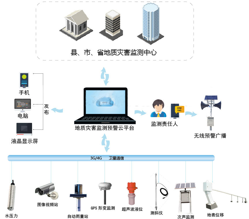 地(dì)質災害監測預警系統 是(shì)結合專業(yè)地(dì)質災害監測設備和(hé)數(shù)據分(fēn)析技(jì)術(shù),形成地(dì)質災害監測與預警的(de)立體(tǐ)解決方案。該δ系統通(tōng)過對(duì)監測點的(de)監測數(shù)據遠(yuǎn)程采集,實現(xiàn)了(le)監測數(shù)據實時(shí)反♥饋到(dào)監控中心,監控中心服務器(qì)通(tōng)過分(fēn)析數(shù)據,将預警信息發送給相(xiàng)應負責的(de)責任人(rén)、責任人(rén)根據應急預案及時÷(shí)下(xià)達指令,通(tōng)過廣播通(tōng)知(zhī)受威脅對(duì)象快(kuài)速撤離(lí)。